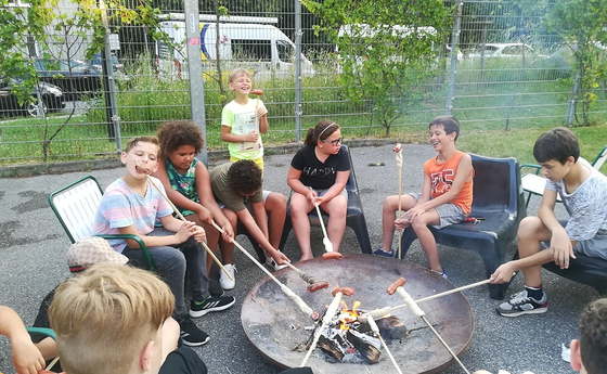 Nachdem wir gemeinsam ein Feuer in der Feuerschale gemacht haben, haben wir fleißig Knacker und Steckerlbrot gegrillt. Jakob hat extra ein paar Lieder herausgesucht und so wurde neben Hulapalu auch Wolke 10 gesungen.