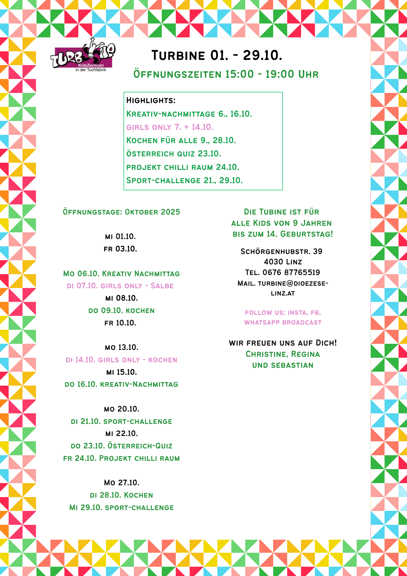 Mädchen in der TURBINe Vom 6. bis zum 16. Oktober gibt es bei uns ein spezielles Angebot für Mädchen. mehr: Mädchen in der TURBINe
