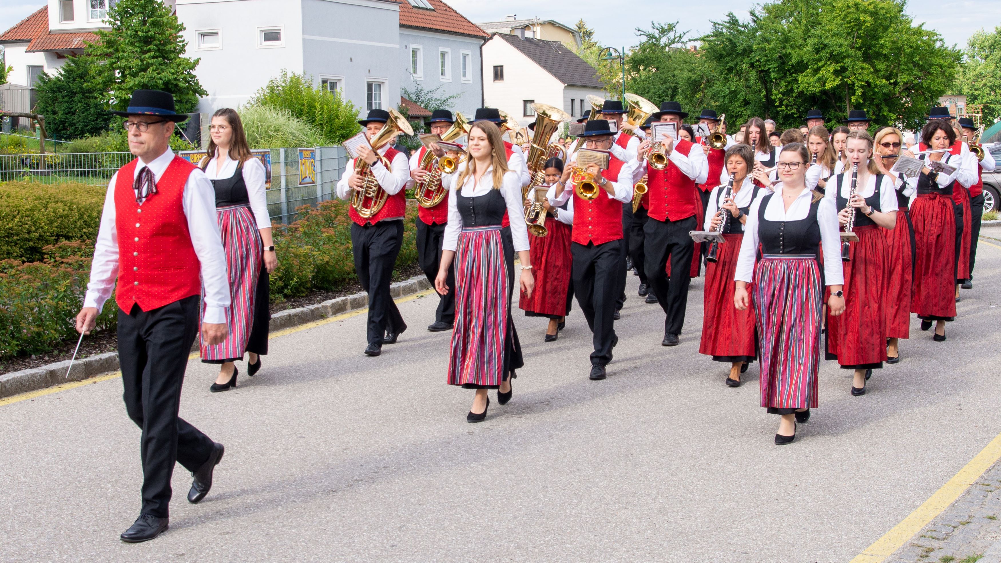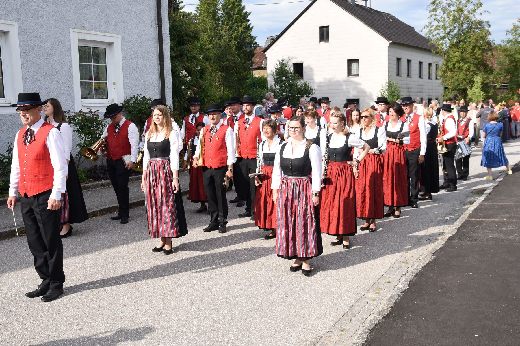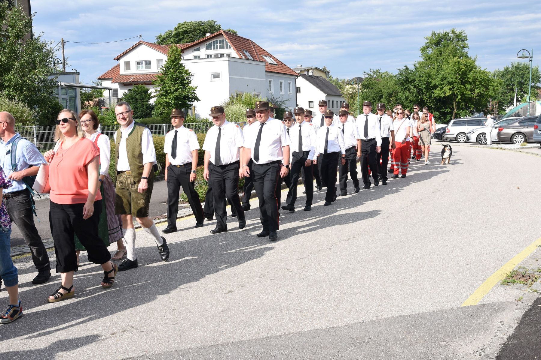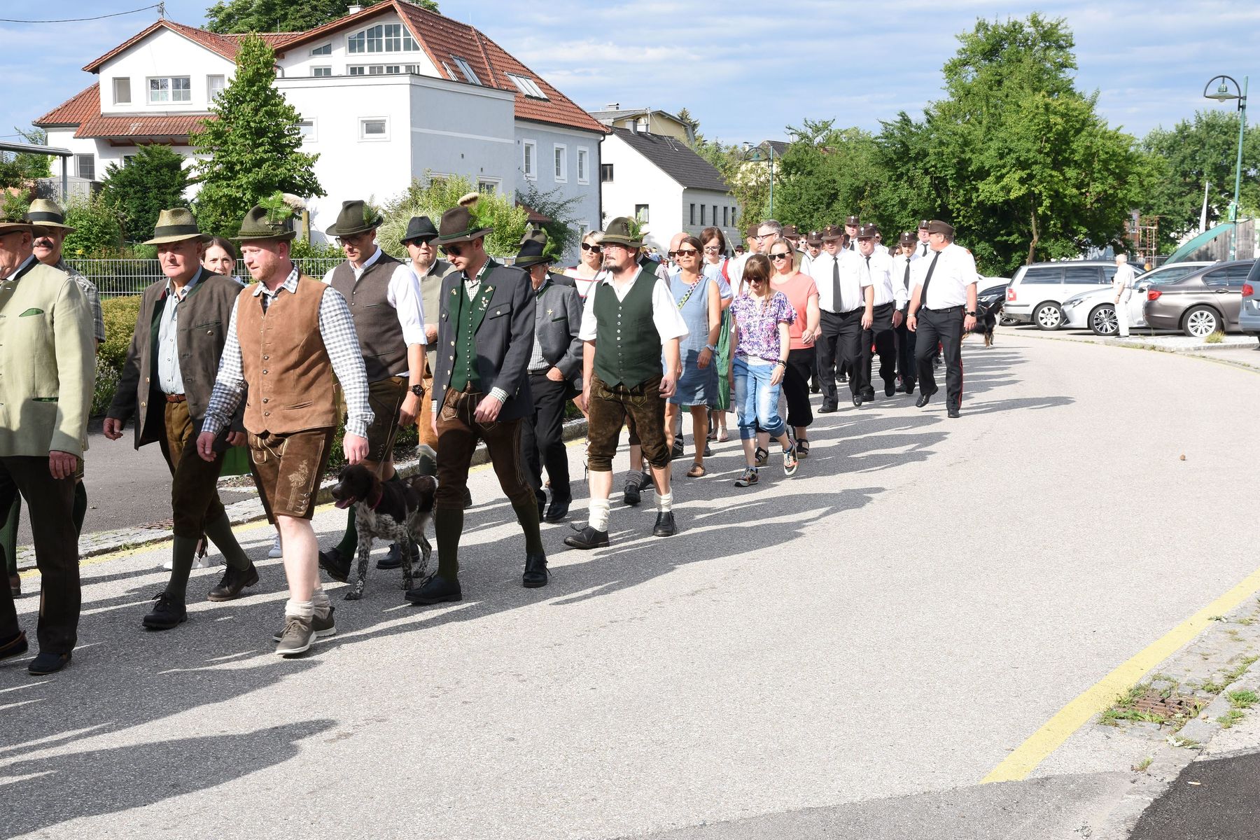 Es war schon beeindruckend, wie viele Vereine, Gruppierungen und Ehrengäste gemeinsam und sogar begleitet von zwei Musikkapellen vom Schöneringer Dorfplatz zum Festakt in die Stockschützenhalle marschierten!