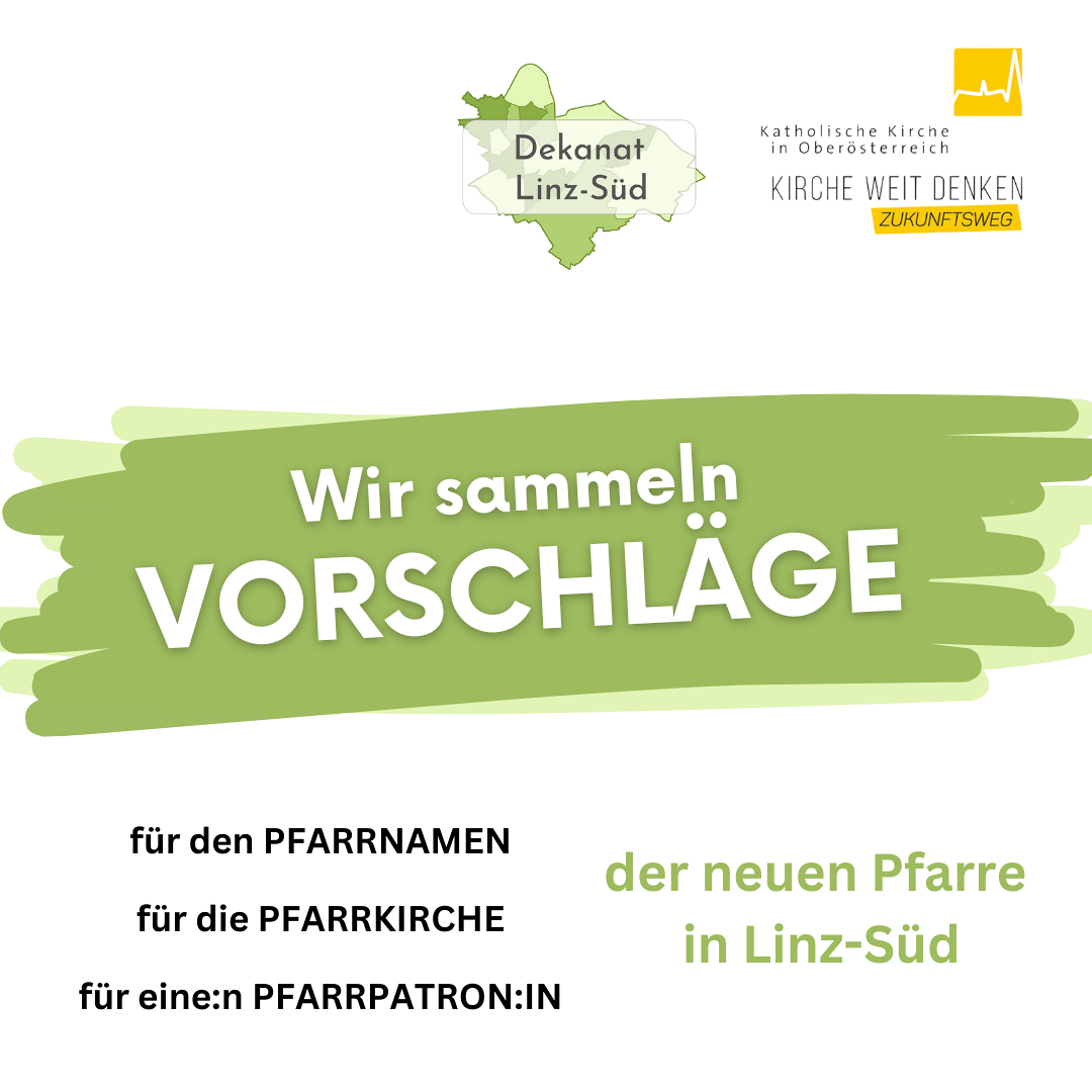 nach einem Namen, einer Pfarrkirche und ev. eine:m Pfarrpatron:in für unsere neue Pfarre in Linz-Süd.